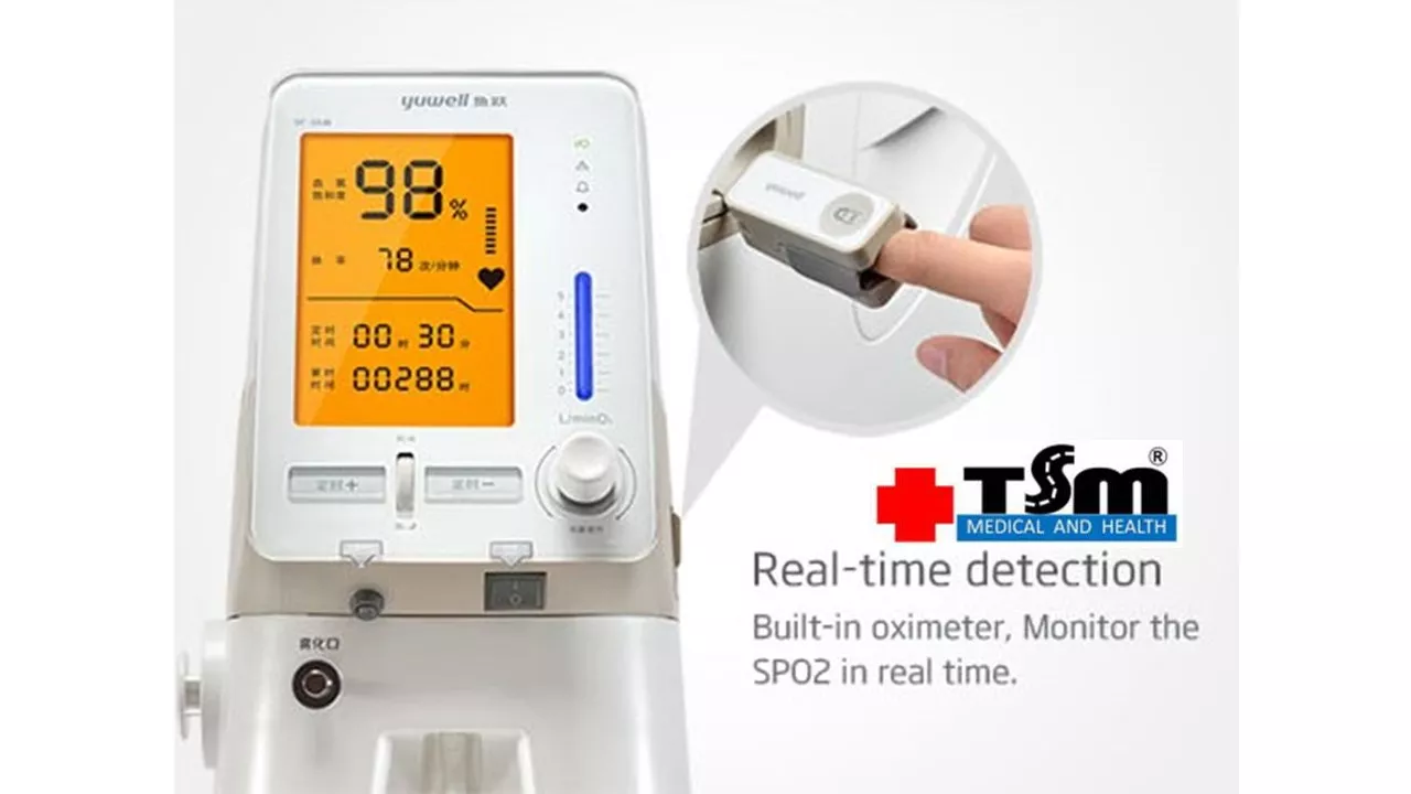 - มีเครื่องวัดความอิ่มตัวของออกซิเจนในเม็ดเลือดและอัตราการเต้นของหัวใจ/นาที แบบเป็นสายวัดติดอยู่กับตัวเครื่อง สะดวกและเม่นยำ